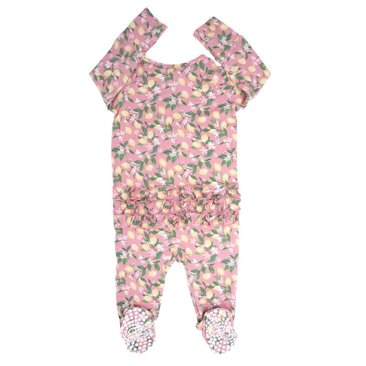Pink Butterfly Daisy Bamboo Ruffle Footie