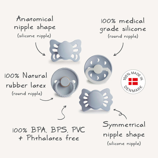 FRIGG Baby's First Pacifier Moonlight Sailing (Powder Blue) 4-Pack
