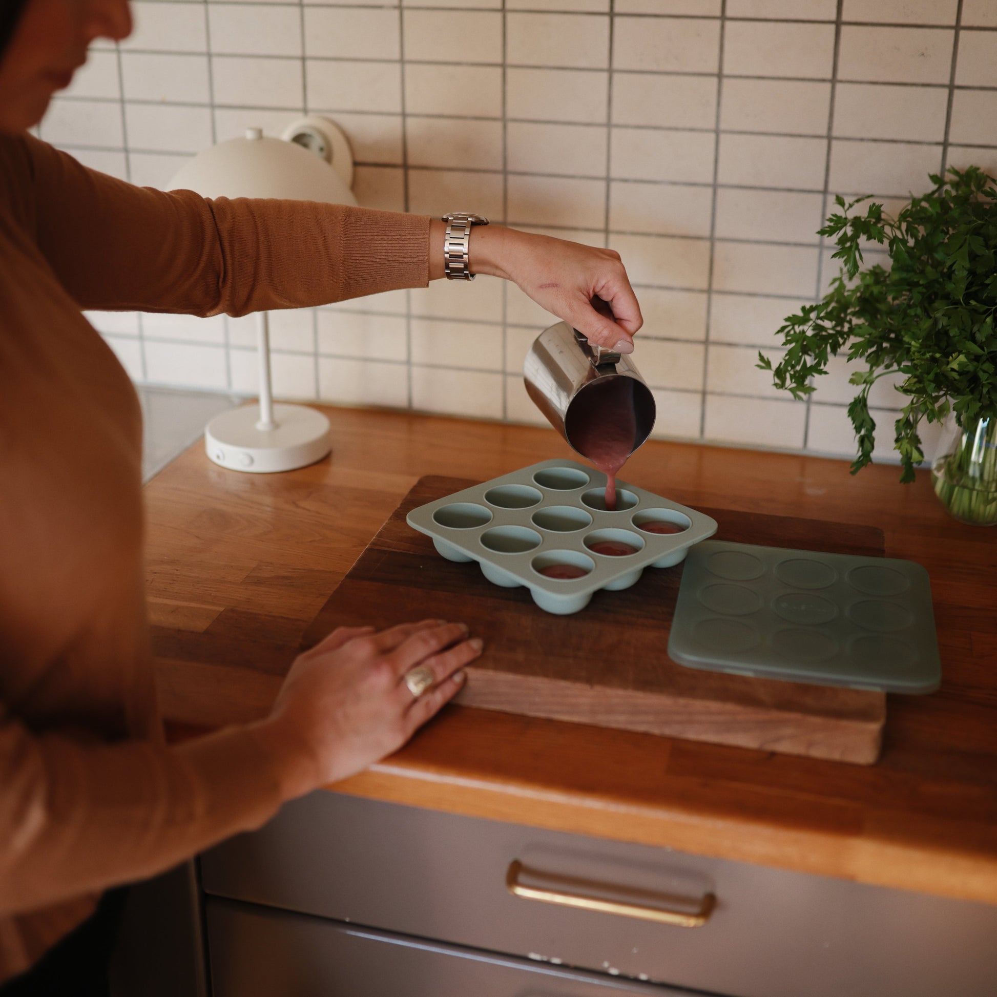 Simplify the prepwork for baby's meals with our silicone freezer tray that's perfect for storing food and milk for littles. The nine cups each hold 1.5 oz (45 mL) and feature interior ounce and milliliter markings to take the guesswork out of measuring. Frozen items pop out of the silicone base with ease, and the clip-on lid made from BPA-free plastic keeps your food secure and your freezer mess-free.