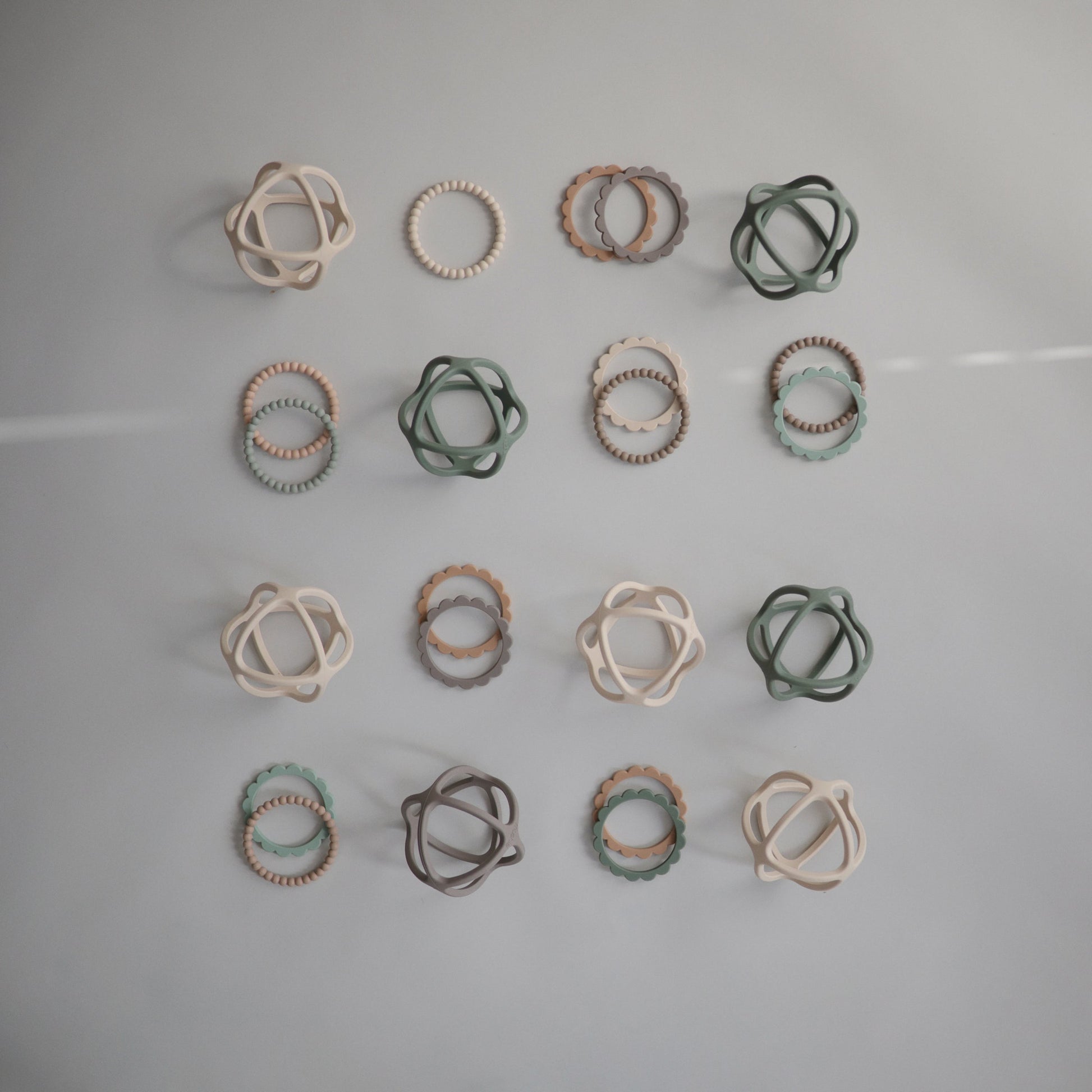 Help soothe your baby's irritated gums with our line of teethers. Made from 100% non-toxic, food-grade silicone, and designed to be easy to grasp by tiny fingers, our teether balls are safe for your baby to use. Their geometric design and sophisticated colors make them a stylish addition to your home.