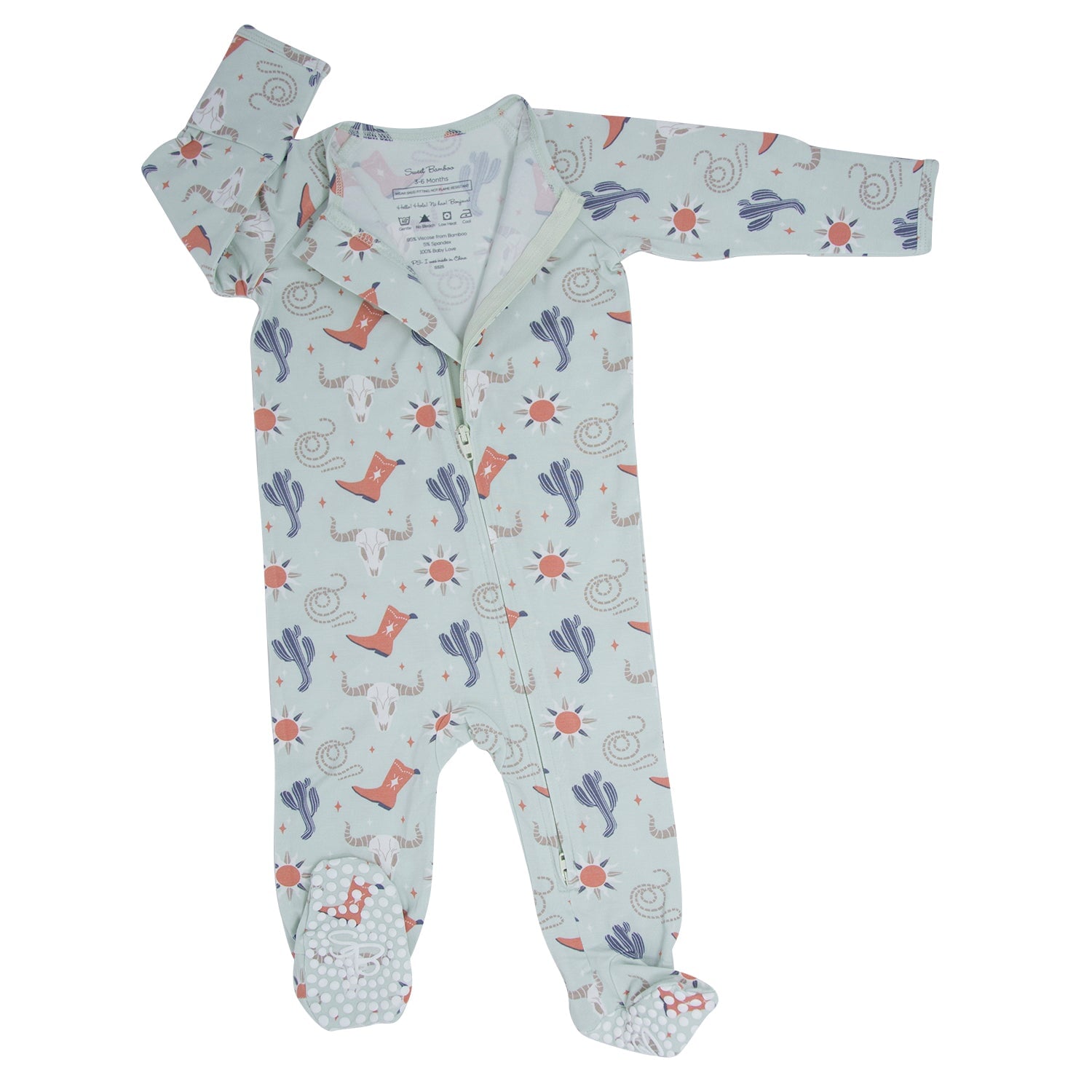 Ask and you shall receive. This yummy footie is equipped with a smooth 2-way zipper, silicone grips on the foot pads and fold-over handcuffs. Plus our silky-soft fabric hugs in all the right places to show off those baby curves.