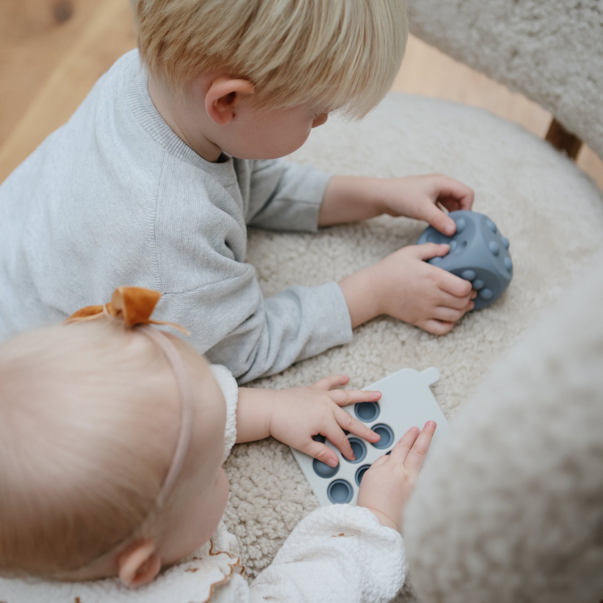 Combine learning and play with the mushie Dice Press Toy. Made with 100% food grade silicone, the pair of dice features poppable dots on each face, encouraging fine motor skill development while also providing a tool for teaching counting and simple arithmetic. A sensory toy and STEM toy all in one, this set of two was developed to keep little hands and minds busy.