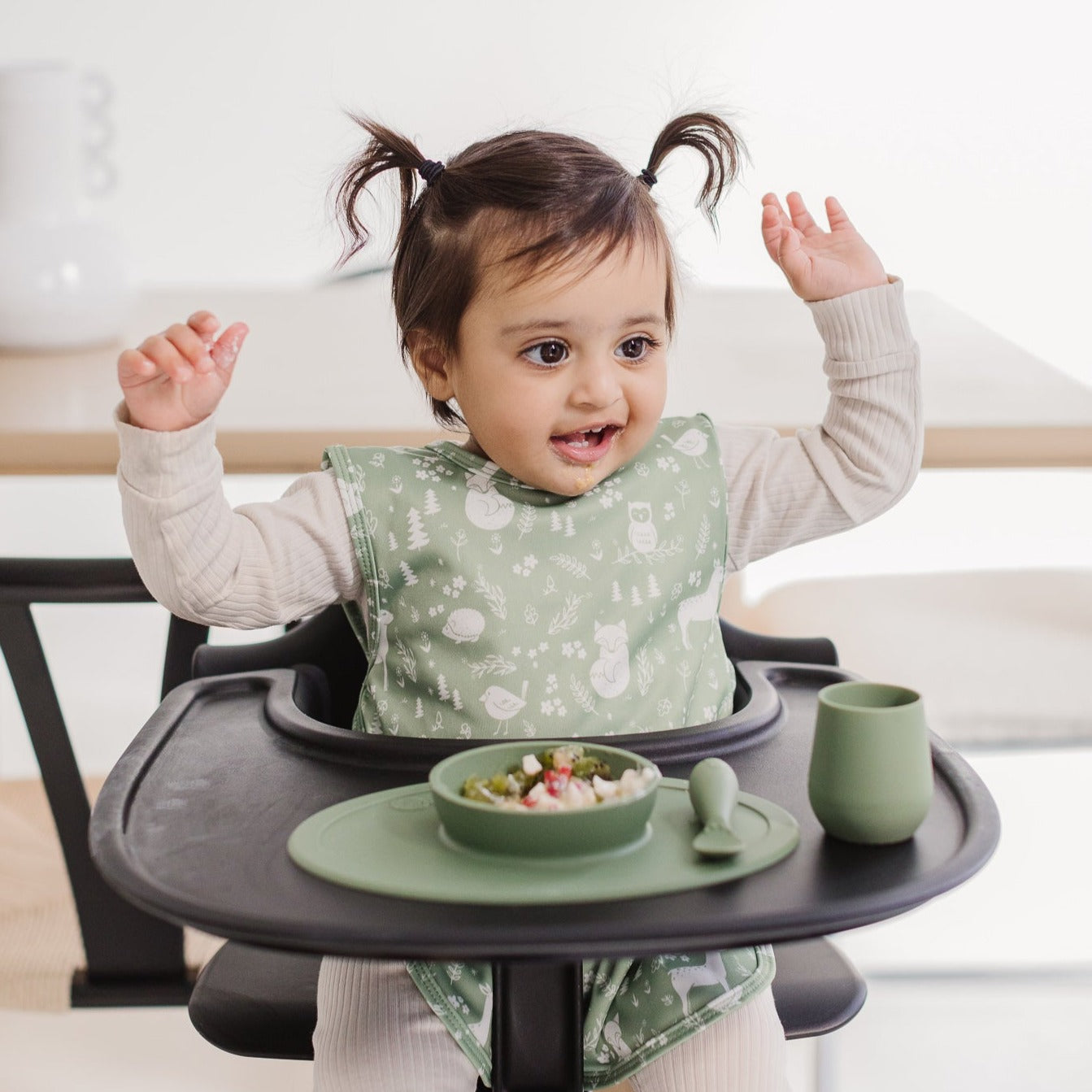 Quick Cleaning: rinse entire bapron under water to remove all food/crumbs. Gently shake off water and allow to air dry fully. Bapron will be ready to use again when fully dry (approx. 30 minutes!)