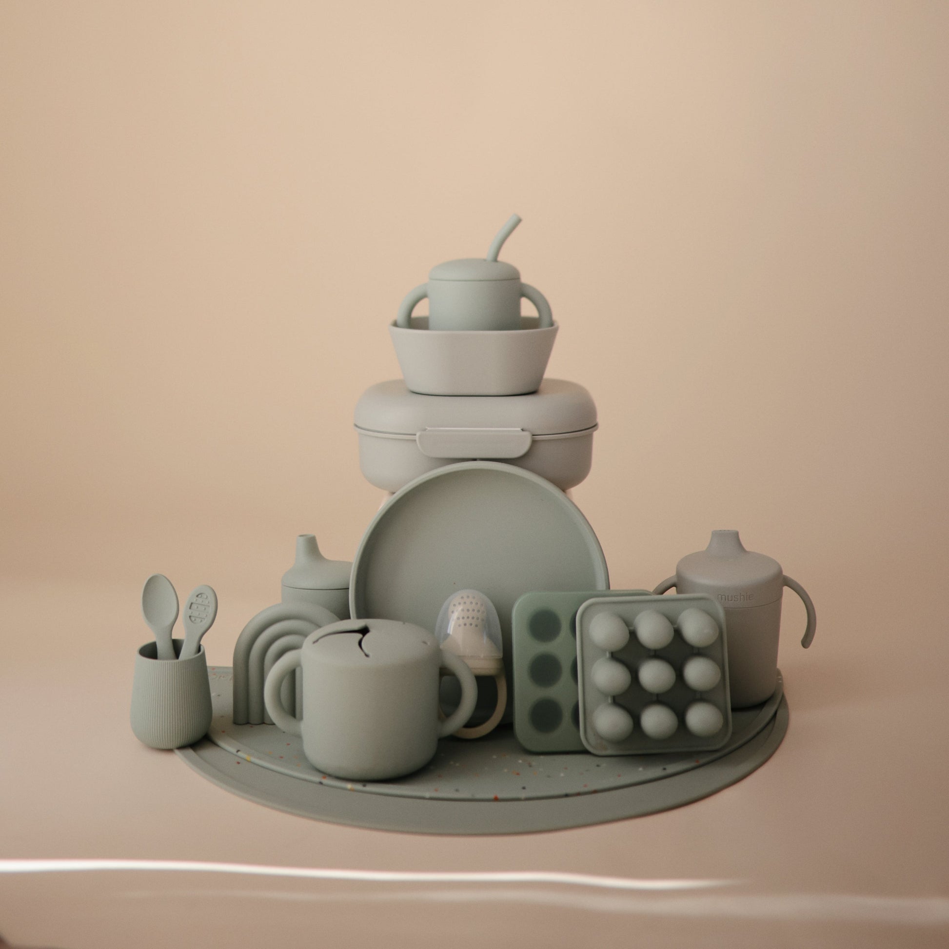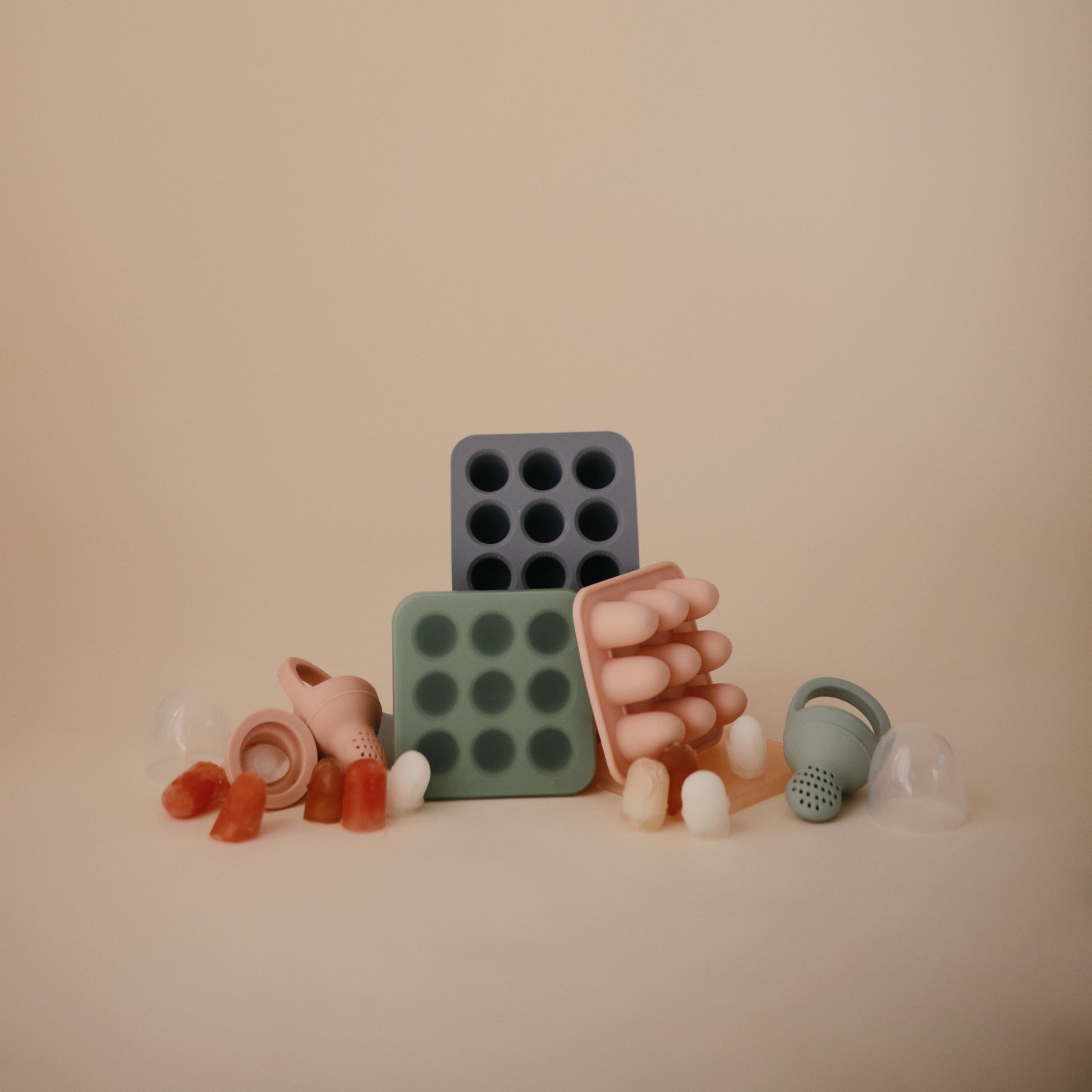 This compact silicone freezer tray is designed for freezing purees and mashed foods that fit perfectly inside the Mushie Fresh Food Feeders. Featuring nine half ounce compartments with a frosted plastic lid for easy stacking and a quick view to see how many portions remain. The tray is made out of soft, non-toxic silicone, making it easy to pop out your little’s treats once frozen. Both the lid and tray are dishwasher safe for hassle-free cleaning.