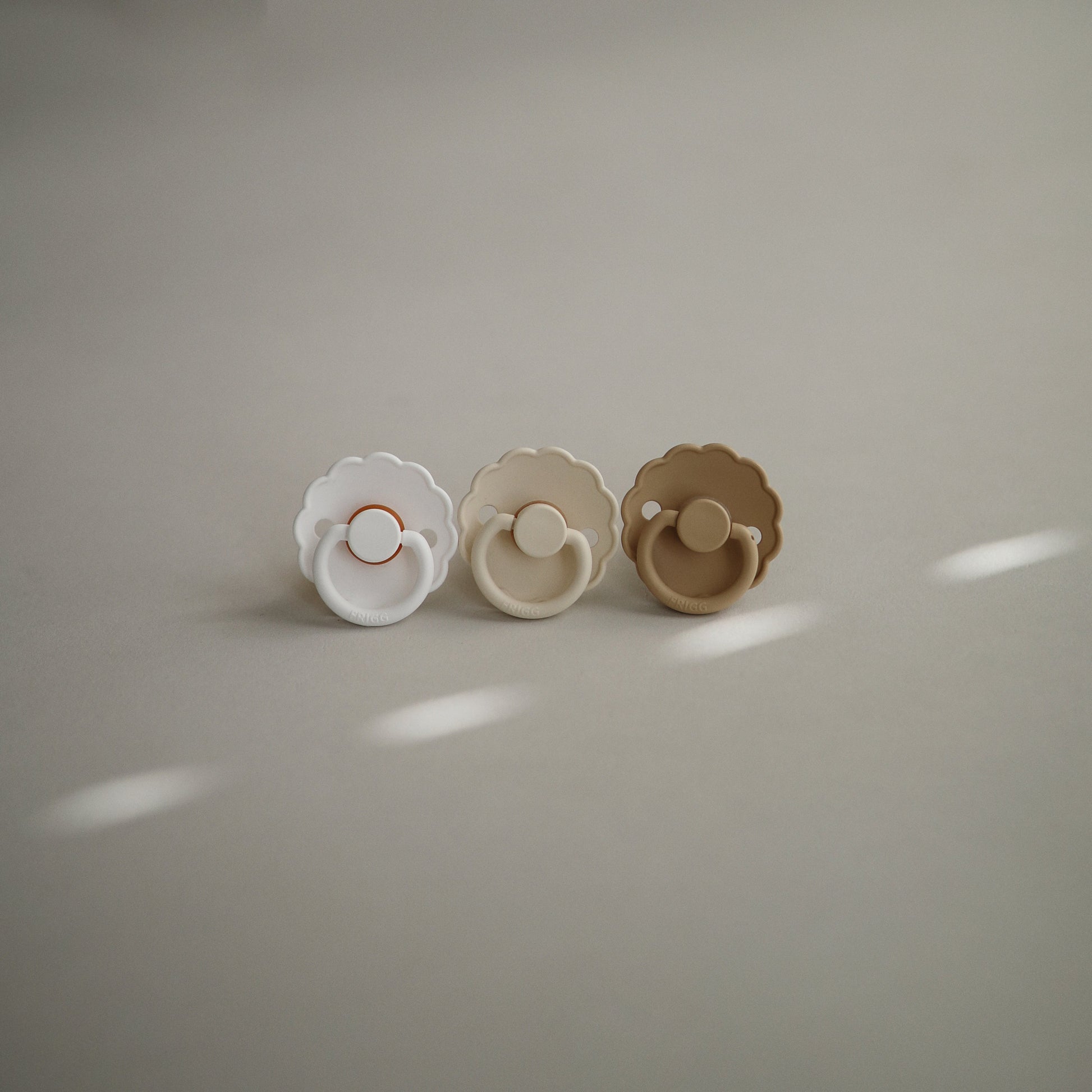 - What's included: 1 set of 2 FRIGG Daisy silicone pacifiers