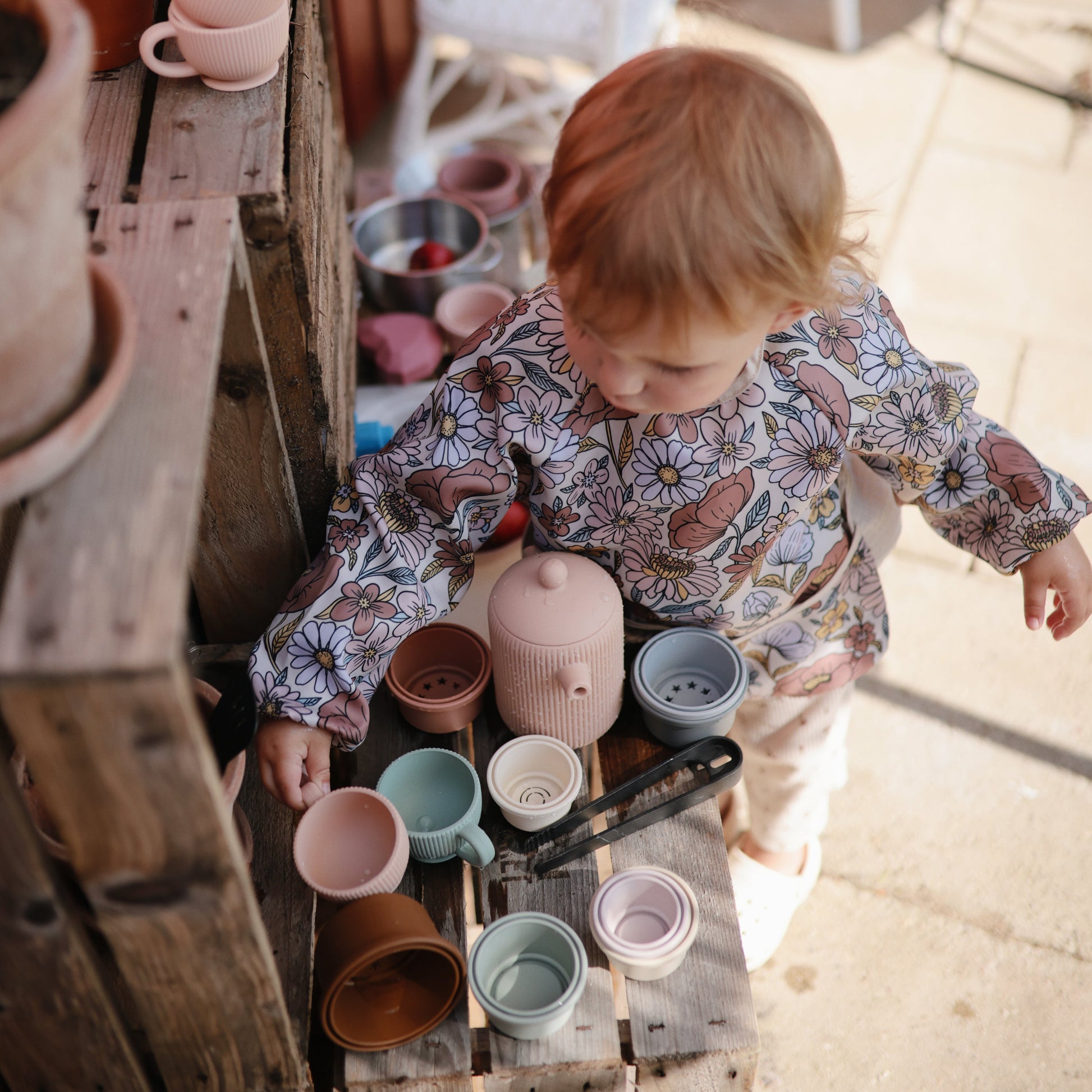 Keep the kids clean at mealtimes, during art projects or in other messy moments with Mushie's water resistant long sleeve bib. Its wide pocket easily catches food while the bib stays secure and fully covers outfits. With a velcro closure at the back of the neck, it's perfectly sized for littles between 6 and 24 months. Parents appreciate the wipe-clean material that's also safe for washing machines, so you can embrace the day without clothing stains.