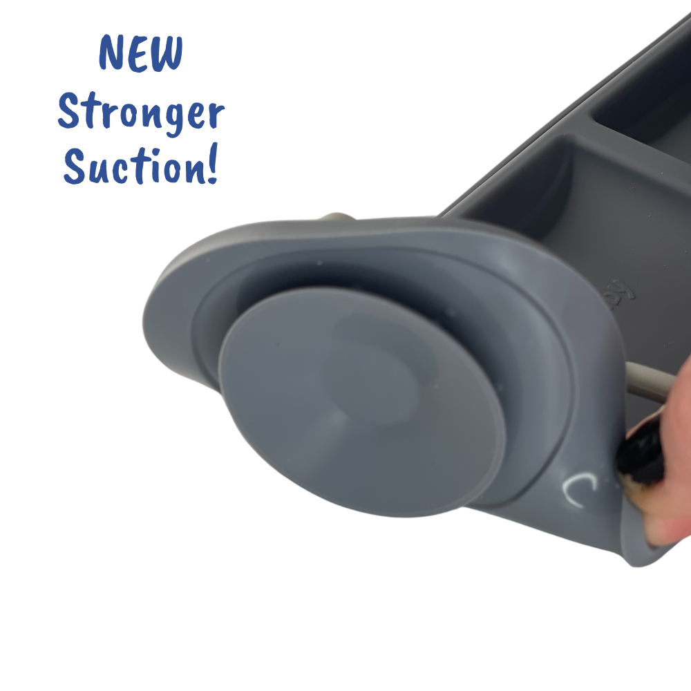 Whether used during playtime or mealtime, the Mini Mat and tether system supports sensory development (NEW sensory bumps) and fine motor skills, builds problem-solving skills, and encourages their independence as they begin to feed on their own!