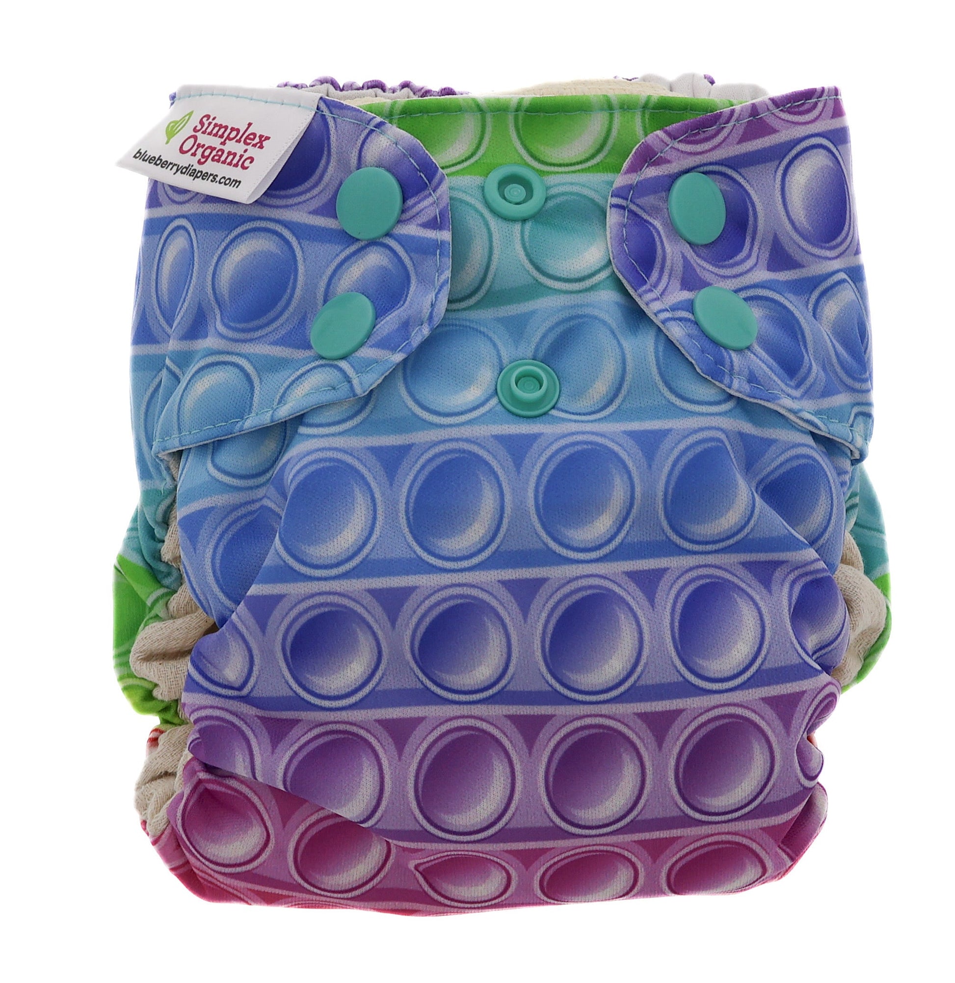 An all-in-one diaper design that combines the convenience of an all-in-one diaper while providing the absorbency adjustability of a pocket diaper. It is made with a waterproof outer layer and 10 layers of 100% organic birdseye cotton fabric in the wet zone.