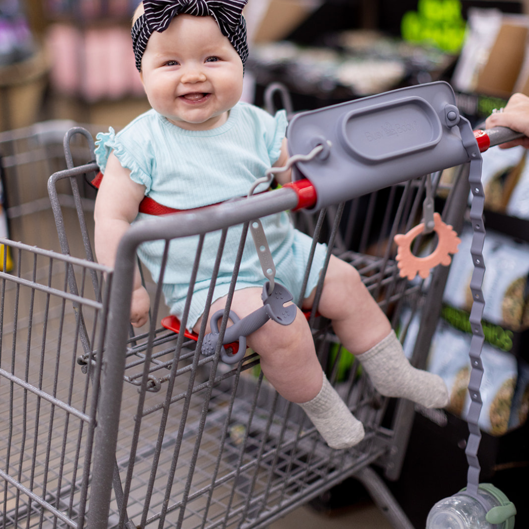 In addition to mealtime, these Mats are great accessories for playtime or for keeping baby engaged while on-the-go. The Mats stick to glass doors, refrigerators, dishwashers, and even bathtub walls for sit-at play at home. They can also be wrapped around shopping cart handles, stroller handles, or car seat handles for keeping toys within reach wherever you go!