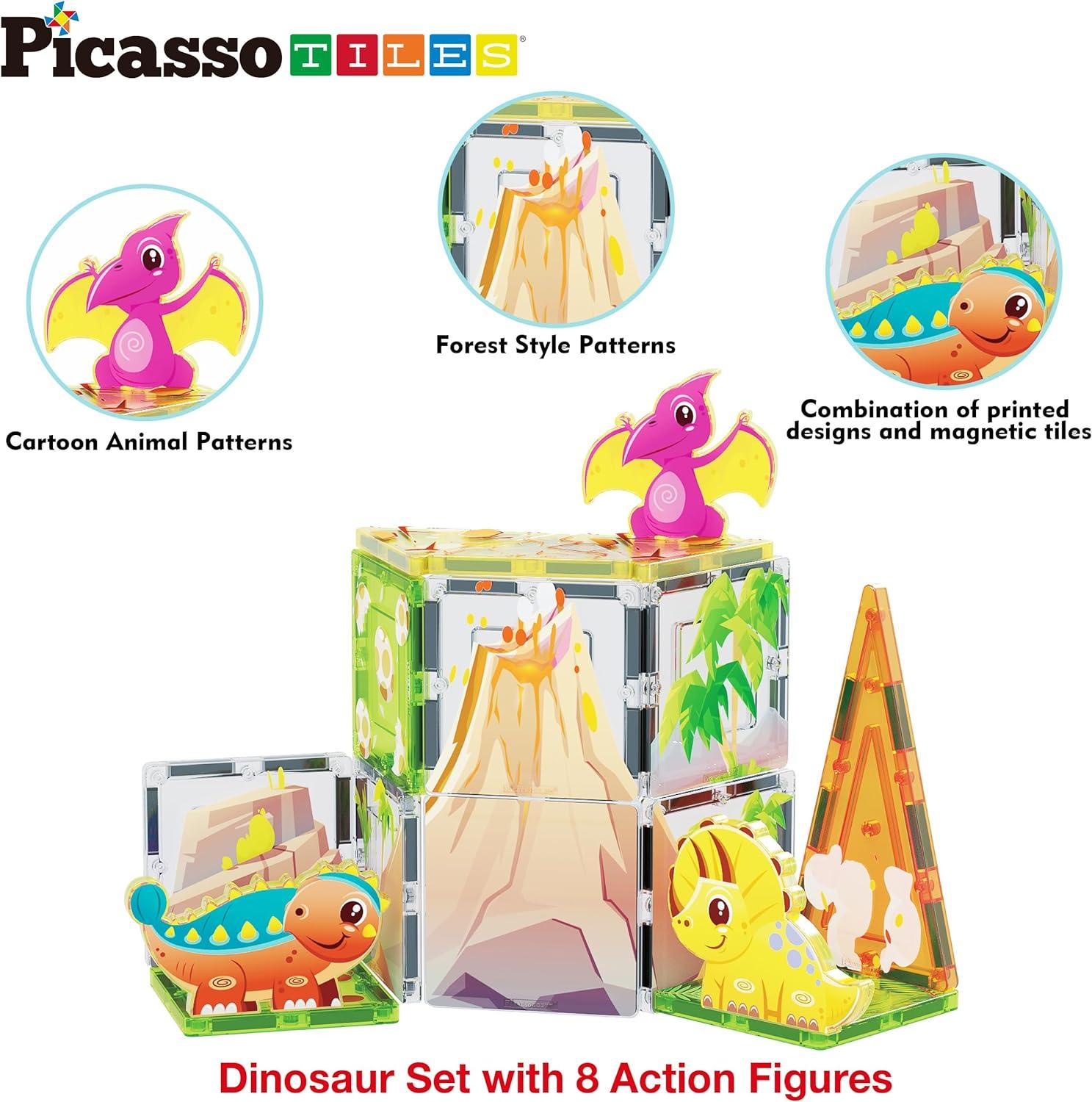 Description: Explore PicassoTiles magnet tile version of a dinosaur Jurassic world with our 26 piece magnetic tile building blocks set. Boys and girls alike will delight in creating thrilling prehistoric adventures as they create magnetic tile masterpieces and embark on prehistoric adventures.