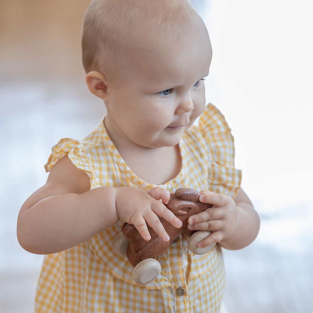 Hop alongside this happy bunny! With a soft touch and an energetic design, children can easily grab and play with these push-along bunnies and incorporate them into imaginative play scenarios. Through play, kids also develop fine motor skills and gain exposure to cause-and-effect relationship.