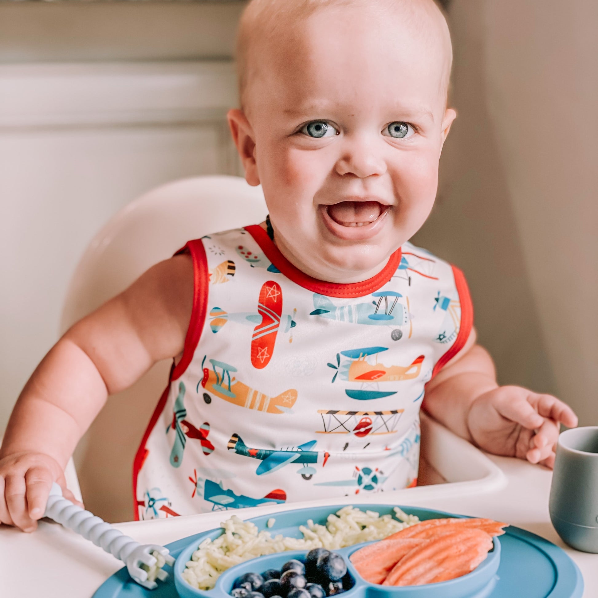 This best-selling “Bapron”, also known as a bib-apron hybrid, full-coverage bib, smock, or apron, is designed for comfort and safety. Because of their comfortable, secure-fitting horizontal ties and their full-coverage design, Baprons are the perfect companion for mealtime, art, and sensory play!