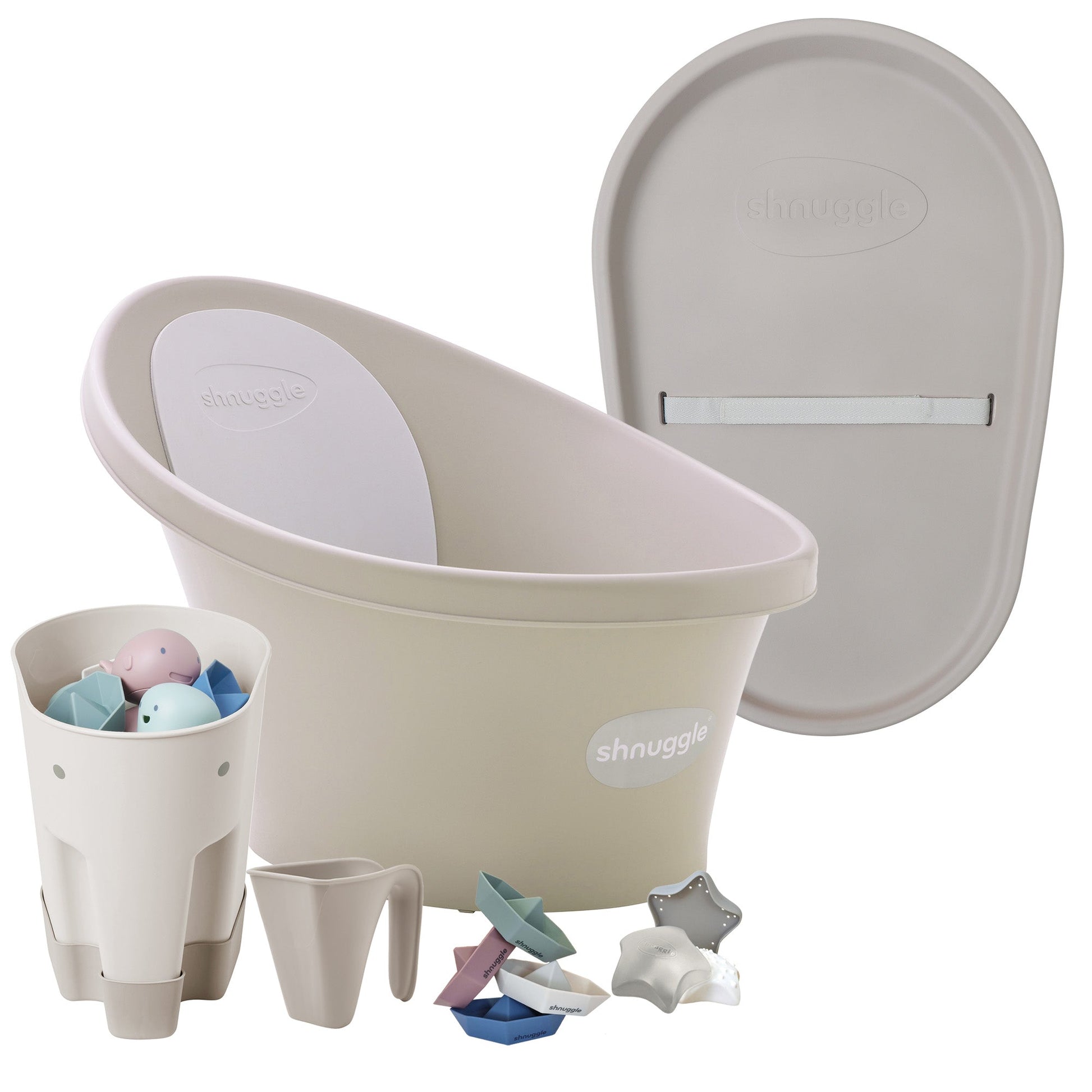 Enjoy a relaxing, well-organized routine with this all-in-one Shnuggle Baby Bath & Changing Bundle—everything you need to make bath and diaper time special!