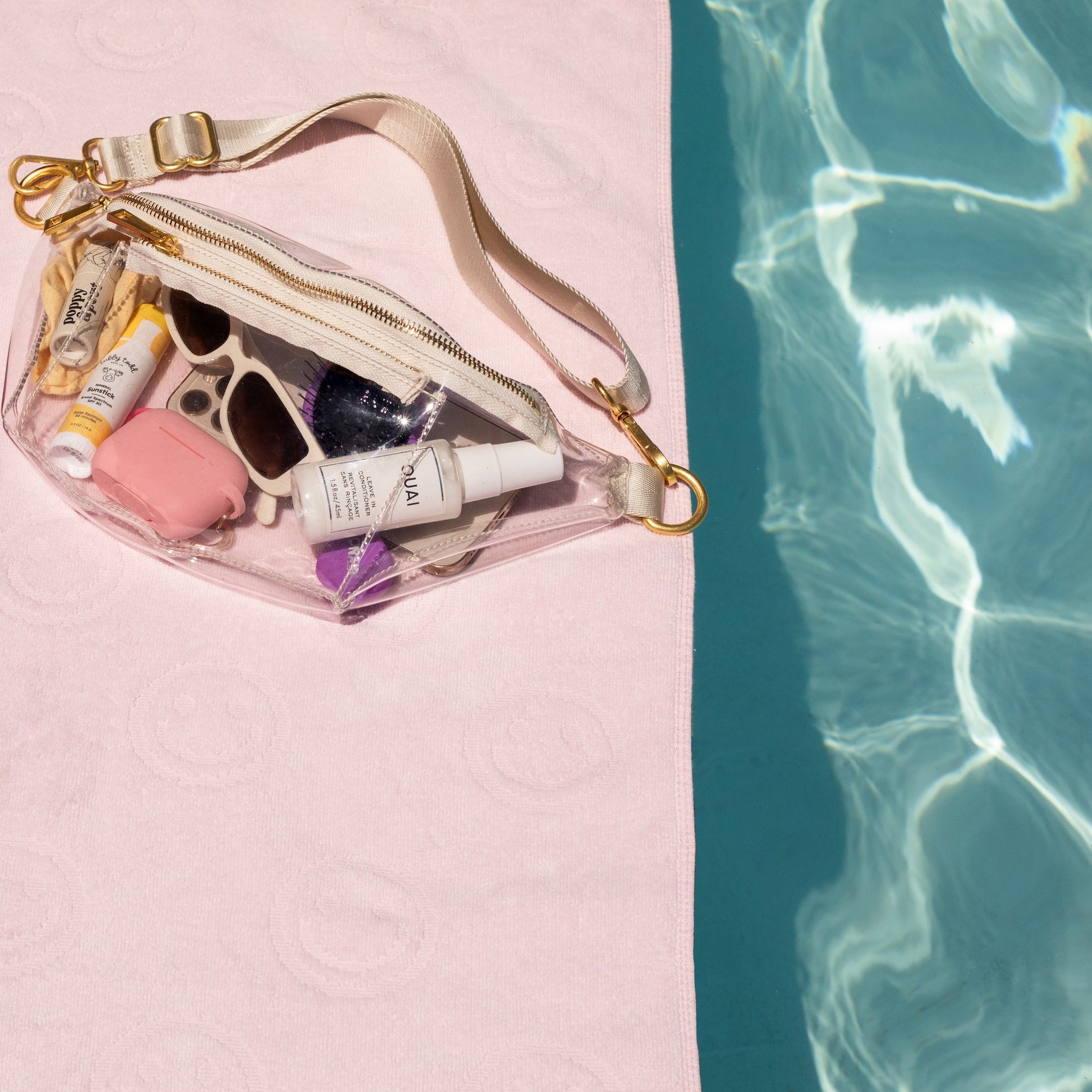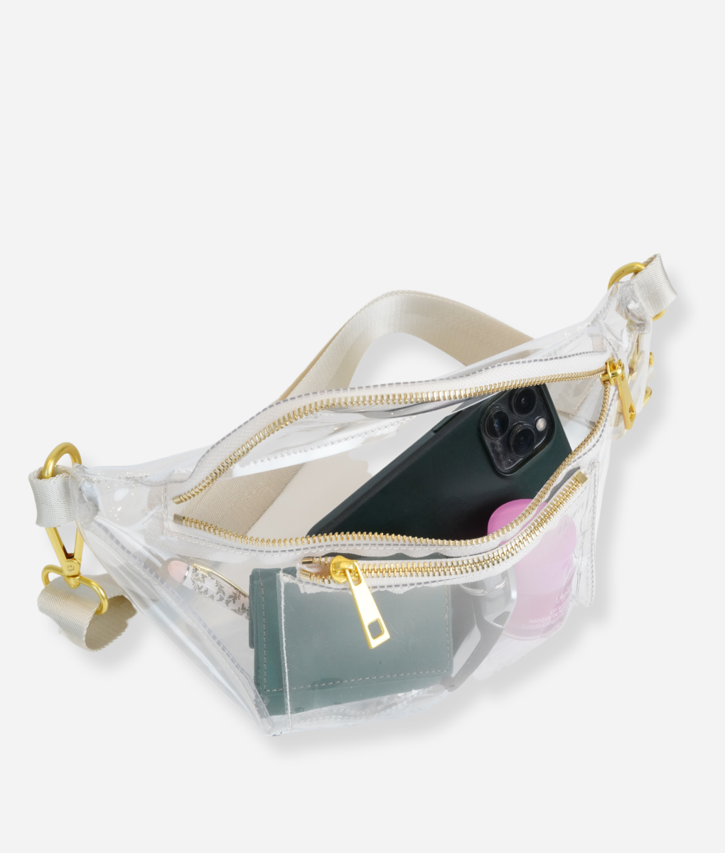 Introducing the Clear Fawny Pack! This see-through version of our popular Fawny Pack is the perfect accessory for hands-free fun at concerts, sporting events, theme parks, the pool, or the beach! The transparent design makes the contents of your bag easy to see, which means it's a safe but stylish option for public events where clear bags are often required. The material wipes clean and is water-resistant, so you don't have to stress about splashing water on your Fawny Pack or spilling a drink on it when you're cheering on your favorite sports team or rocking out to your favorite song!